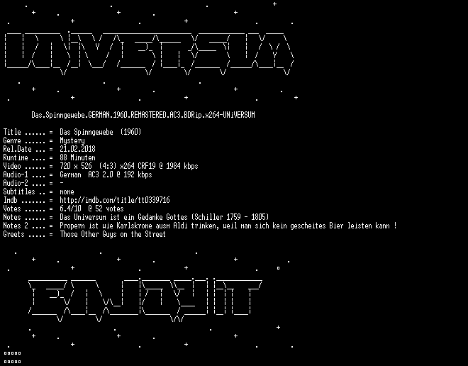 | FiLENAME: | Das.Spinngewebe.GERMAN.1960.REMASTERED.AC3.BDRip.x264-UNiVERSUM.mkv |