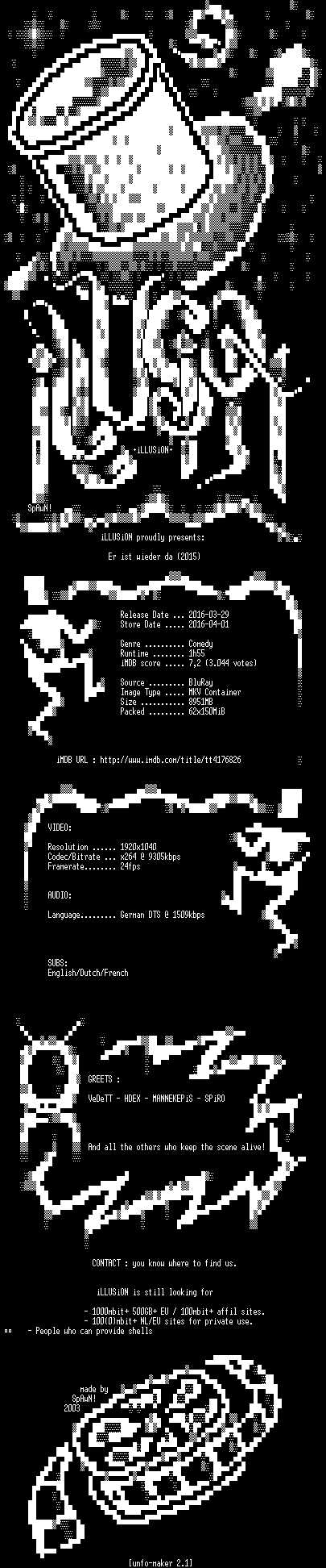 | FiLENAME: | Er.Ist.Wieder.Da.2015.GERMAN.1080p.BluRay.x264-iLLUSiON.mkv |