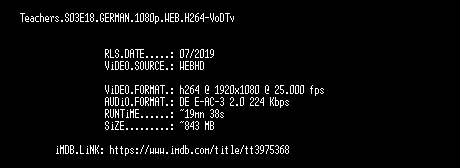 | FiLENAME: | Teachers.S03E18.GERMAN.1080p.WEB.H264-VoDTv.mkv |