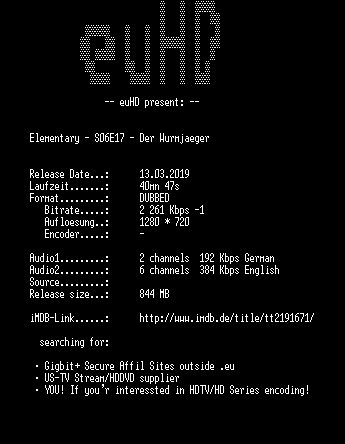 | FiLENAME: | Elementary.S06E17.Der.Wurmjaeger.GERMAN.DUBBED.DL.720p.REAL.WebHD.h264-euHD.mkv |
