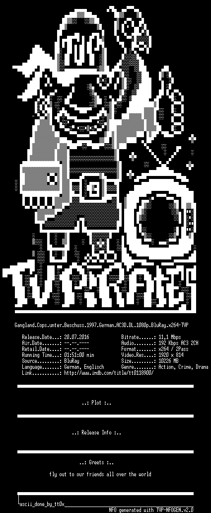 | FiLENAME: | Gangland.Cops.unter.Beschuss.1997.German.AC3D.DL.1080p.BluRay.x264-TVP.mkv |