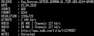 | FiLENAME: | Ray.Donovan.S07E08.GERMAN.DL.720P.WEB.H264-WAYNE.mkv |