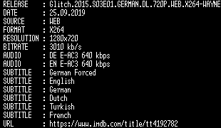 | FiLENAME: | Glitch.2015.S03E01.GERMAN.DL.720P.WEB.X264-WAYNE.mkv |