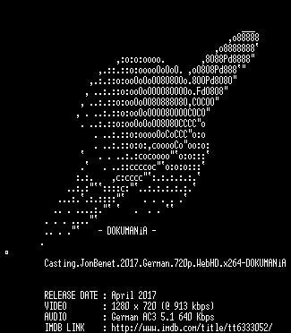 | FiLENAME: | Casting.JonBenet.2017.German.Doku.720p.WebHD.x264-DOKUMANiA.mkv |