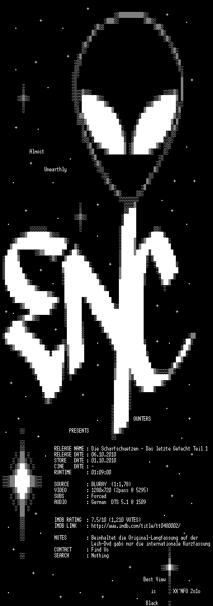 | FiLENAME: | Die Scharfschuetzen - Der letzte Auftrag - Teil1 (2008) [GER-dts 720p BD].mkv |