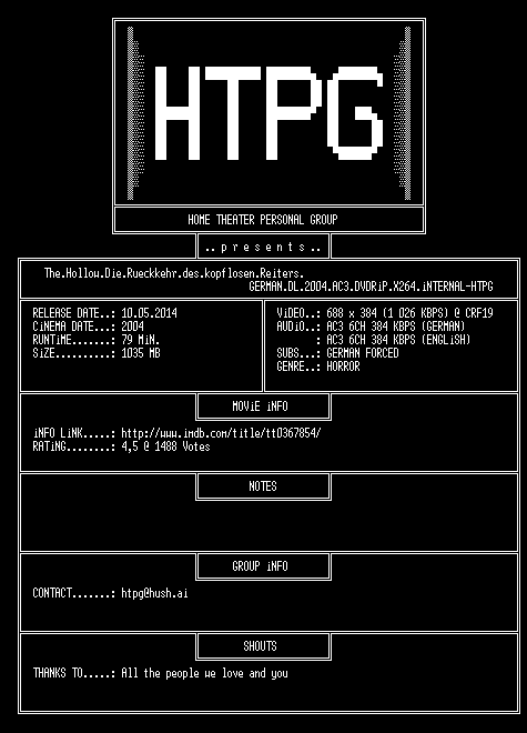 | FiLENAME: | The.Hollow.Die.Rueckkehr.des.kopflosen.Reiters.GERMAN.DL.2004.AC3.DVDRiP.X264.iNTERNAL-HTPG.mkv |