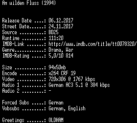 | FiLENAME: | Am.wilden.Fluss.German.REMASTERED.1994.AC3.BDRip.x264-SPiCY.mkv |