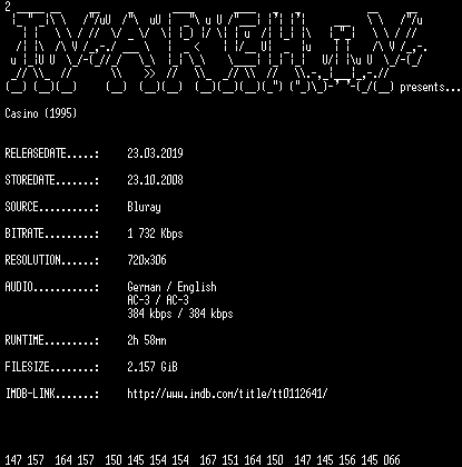 | FiLENAME: | Casino.1995.German.DL.BDRip.x264.iNTERNAL-TVARCHiV.mkv |