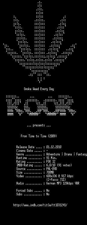 | FiLENAME: | From.Time.to.Time.German.2009.DVDRiP.XViD-ROOR.avi |