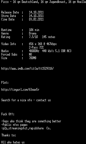 | FiLENAME: | Picco.German.AC3.DVDRip.XviD-DiSTRiCT.avi |