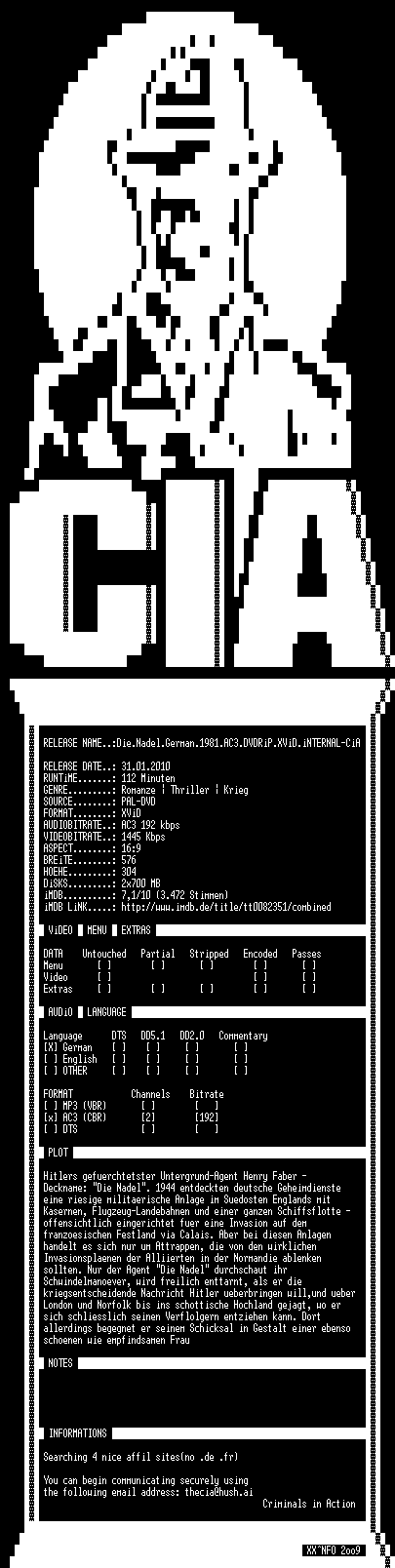 | FiLENAME: | Die.Nadel.German.1981.AC3.DVDRiP.XViD.iNTERNAL-CiA.CD1.avi |