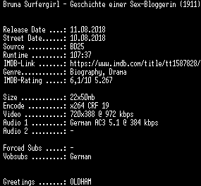 | FiLENAME: | Bruna.Surfergirl.Geschichte.einer.Sex.Bloggerin.German.2011.AC3.BDRip.x264-SPiCY.mkv |