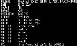 | FiLENAME: | The.Ranch.S04E07.GERMAN.DL.720P.WEB.X264-WAYNE.mkv |