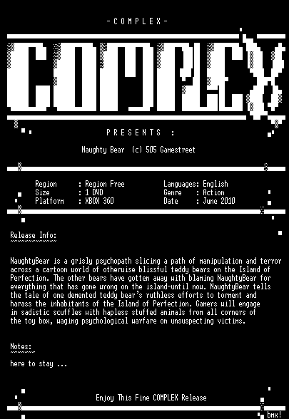 | FiLENAME: | Naughty.Bear.XBOX360-COMPLEX.iso |