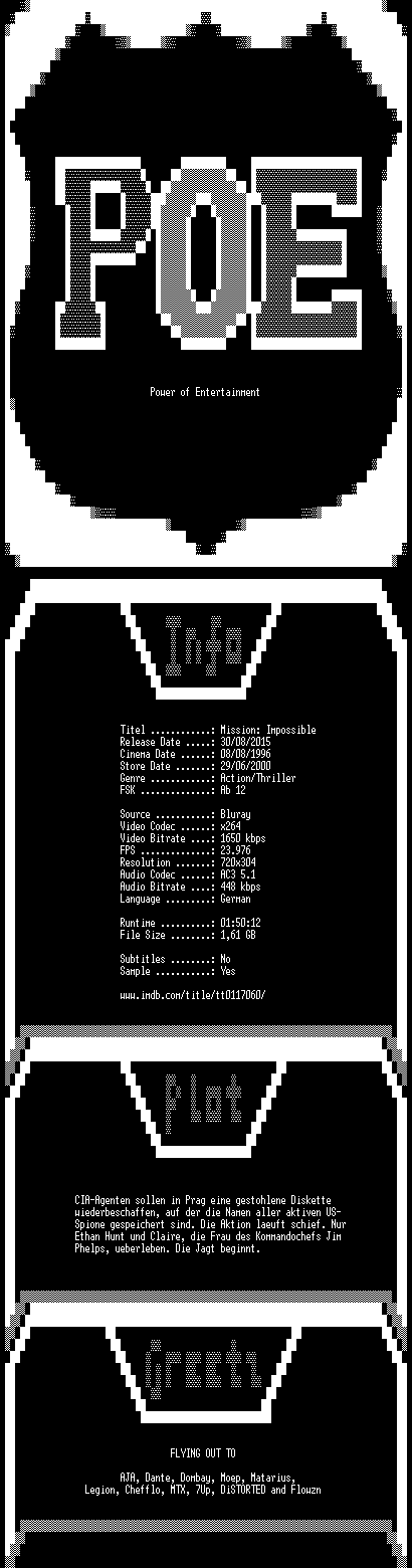 | FiLENAME: | Mission.Impossible.1996.BDRip.AC3.German.x264-POE.mkv |