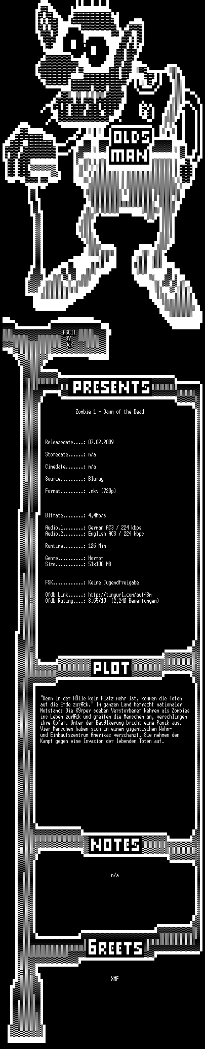 | FiLENAME: | Zombie 1 - Dawn of the Dead (1978) [DL 720p BD].mkv |