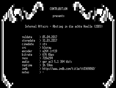 | FiLENAME: | Infernal.Affairs.Abstieg.in.die.achte.Hoelle.2003.Remastered.German.BDRip.x264-CONTRiBUTiON.mkv |