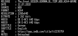 | FiLENAME: | The.Great.S01E09.GERMAN.DL.720P.WEB.H264-WAYNE.mkv |