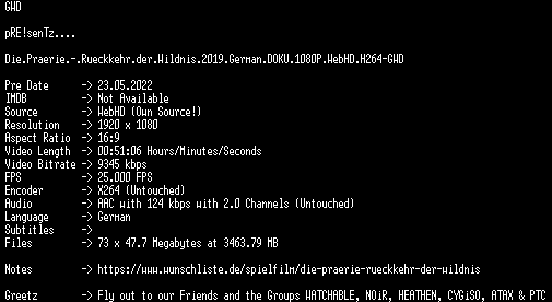 | FiLENAME: | Die.Praerie.-.Rueckkehr.der.Wildnis.2019.German.DOKU.1080P.WebHD.H264-GWD.mkv |