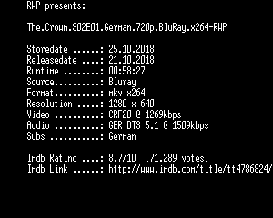 | FiLENAME: | The.Crown.S02E01.German.720p.BluRay.x264-RWP.mkv |