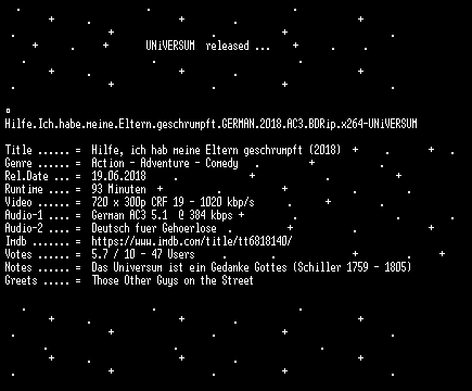 | FiLENAME: | Hilfe.Ich.habe.meine.Eltern.geschrumpft.GERMAN.2018.AC3.BDRip.x264-UNiVERSUM.mkv |