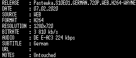 | FiLENAME: | Pastewka.S10E01.GERMAN.720P.WEB.H264-WAYNE.mkv |