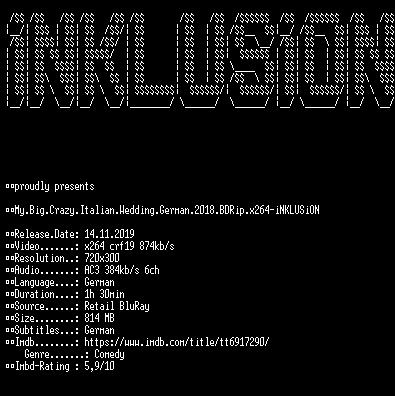 | FiLENAME: | My.Big.Crazy.Italian.Wedding.German.2018.BDRip.x264-iNKLUSiON.mkv |