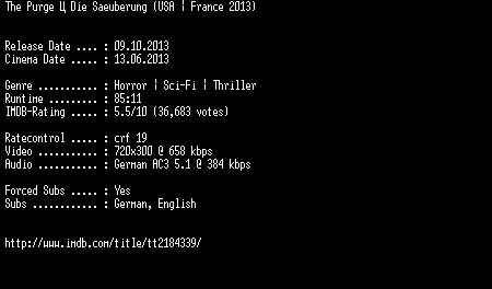 | FiLENAME: | The.Purge.Die.Saeuberung.German.BDRiP.x264-EXQUiSiTE.mkv |