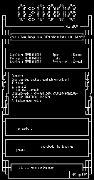 | FiLENAME: | Acronis True Image Home 2009 v12.0 Retail Build 9646 German-0x0008.iso |