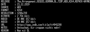 | FiLENAME: | The.Arrangement.S01E01.GERMAN.DL.720P.WEB.X264.REPACK-WAYNE.mkv |