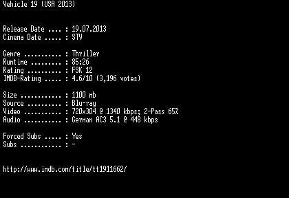 | FiLENAME: | Vehicle.19.German.2013.AC3.BDRiP.XViD-EXQUiSiTE.avi |