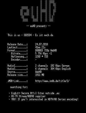 | FiLENAME: | This.is.us.S02E04.Es.ist.noch.da.GERMAN.DUBBED.DL.720p.WebHD.h264-euHD.mkv |