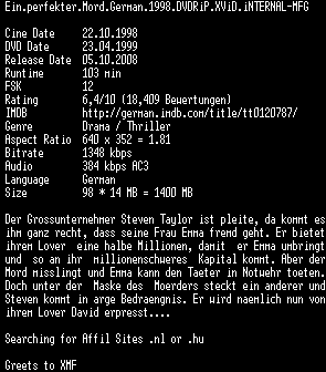 | FiLENAME: | Ein.perfekter.Mord.German.1998.DVDRiP.XViD.iNTERNAL-MFG.CD1.avi |