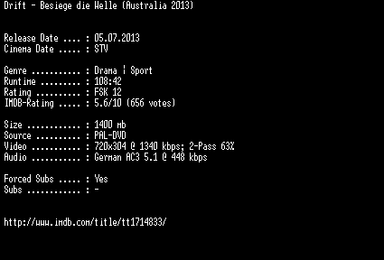 | FiLENAME: | Drift.Besiege.die.Welle.German.2013.AC3.DVDRiP.XViD-EXQUiSiTE.avi |