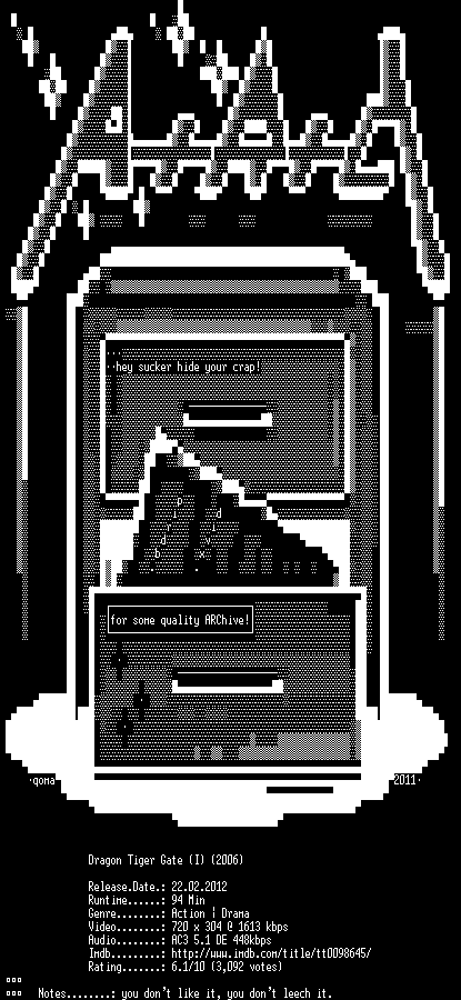 | FiLENAME: | Dragon.Tiger.Gate.German.2006.AC3.BDRip.XviD.INTERNAL-ARC.avi |