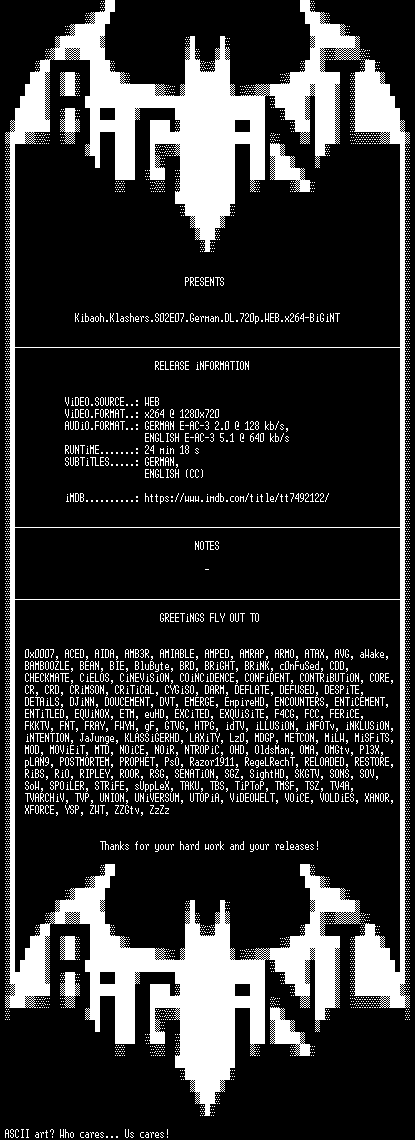 | FiLENAME: | Kibaoh.Klashers.S02E07.German.DL.720p.WEB.x264-BiGiNT.mkv |