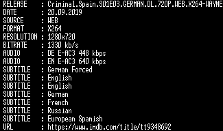 | FiLENAME: | Criminal.Spain.S01E03.GERMAN.DL.720P.WEB.X264-WAYNE.mkv |