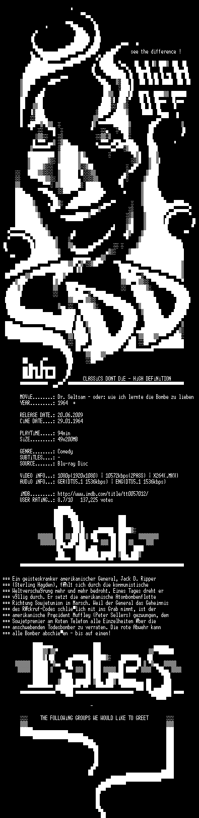 | FiLENAME: | Dr.Seltsam.Oder.wie.ich.lernte.die.Bombe.zu.lieben.1964.German.DTS.DL.1080p.BluRay.x264-CDD.mkv |