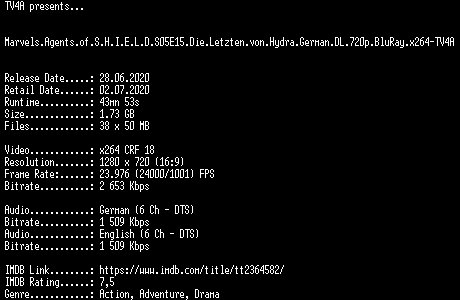| FiLENAME: | Marvels.Agents.of.S.H.I.E.L.D.S05E15.Die.Letzten.von.Hydra.German.DL.720p.BluRay.x264-TV4A.mkv |