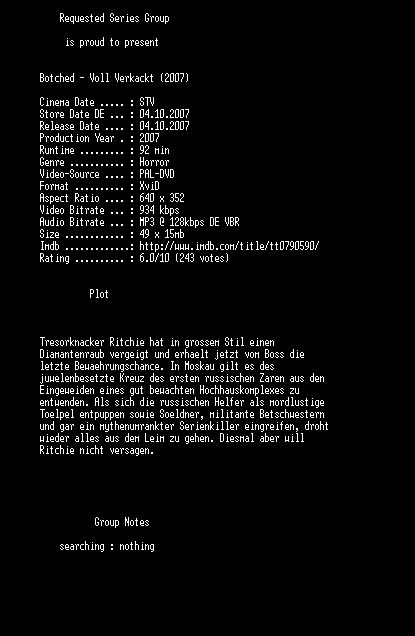 | FiLENAME: | Botched.Voll.Verkackt.UNCUT.German.2007.DVDRiP.XviD-RSG.avi |