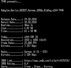 | FiLENAME: | Babylon.Berlin.S02E07.German.1080p.BluRay.x264-TV4A.mkv |