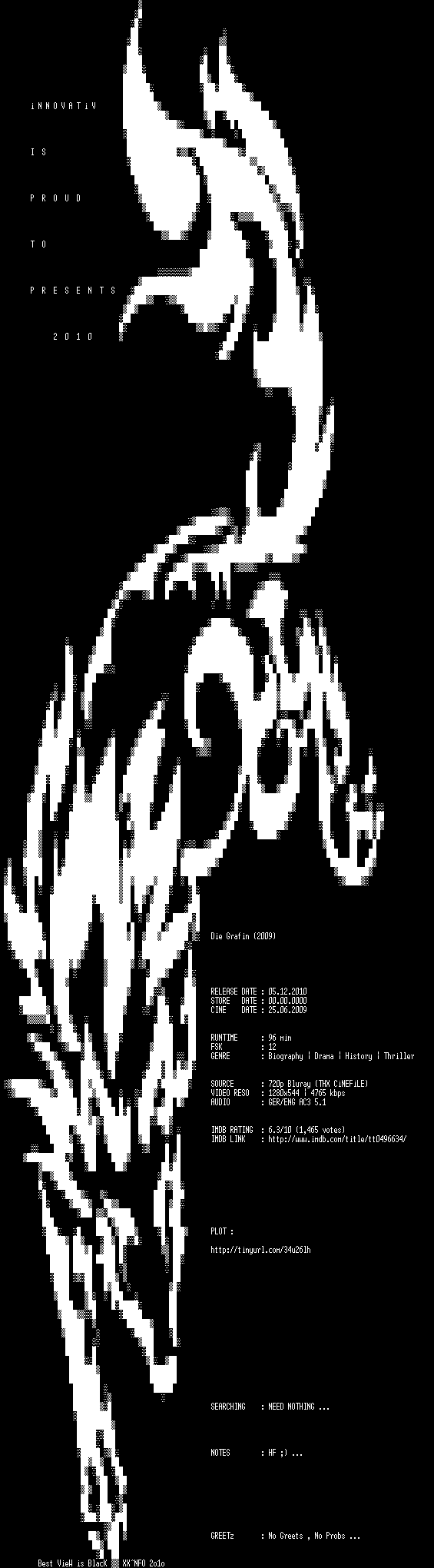 | FiLENAME: | Die.Graefin.2009.German.AC3D.DL.720p.BluRay.x264-iNNOVATiV.mkv |