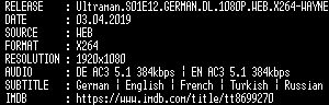 | FiLENAME: | Ultraman.S01E12.GERMAN.DL.1080P.WEB.X264-WAYNE.mkv |