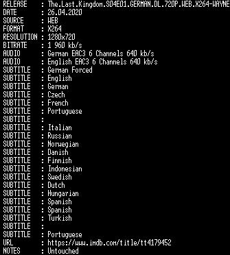 | FiLENAME: | The.Last.Kingdom.S04E01.GERMAN.DL.720P.WEB.X264-WAYNE.mkv |