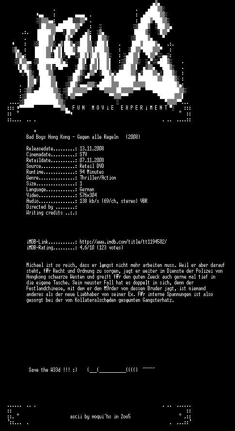| FiLENAME: | Bad Boys Hong Kong - Gegen alle Regeln (2008) [GER WS DVD].avi |