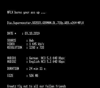 | FiLENAME: | Die.Supermonster.S02E03.GERMAN.DL.720p.WEB.x264-NFLX.mkv |