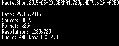 | FiLENAME: | Heute.Show.2015-05-29.GERMAN.720p.HDTV.x264-ACED.mkv |