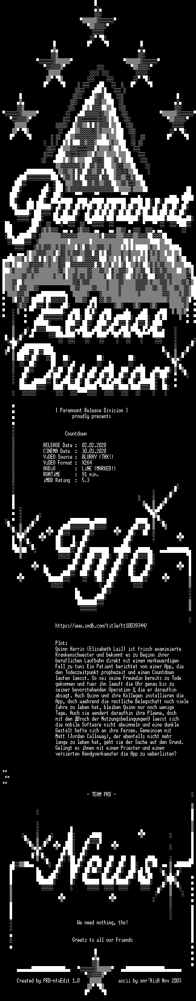 | FiLENAME: | Countdown.2019.German.DL.LD.1080p.BluRay.x264-PRD.mkv |