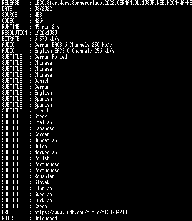 | FiLENAME: | LEGO.Star.Wars.Sommerurlaub.2022.GERMAN.DL.1080P.WEB.H264-WAYNE.mkv |