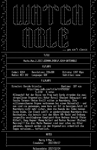| FiLENAME: | Macho.Man.2.2017.GERMAN.DVDRiP.X264-WATCHABLE.mkv |